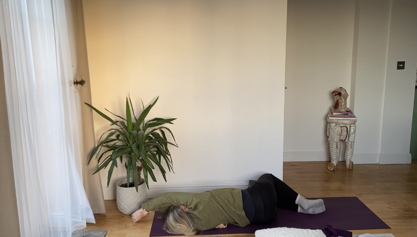 Wrapped for 2025! A restoring practice with breath stretches and nurturing movements. Add cosy socks, jumpers, blankets so you feel wrapped. Props: a cushion, 1 block, a yoga strap/belt and a roll up of a small towel/t-shirt.