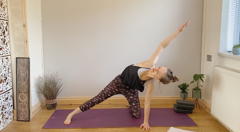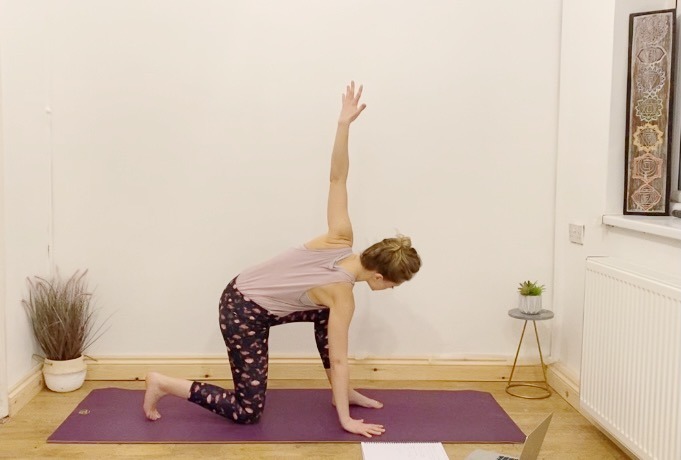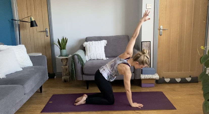 Twists are wonderful for counterposing life and help us to feel calmer. Locate the side core muscles that help you to twist from your centre and strengthen the breathing muscles. Feel centred yet strong from within.