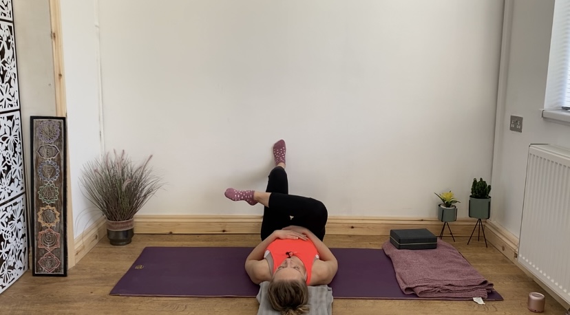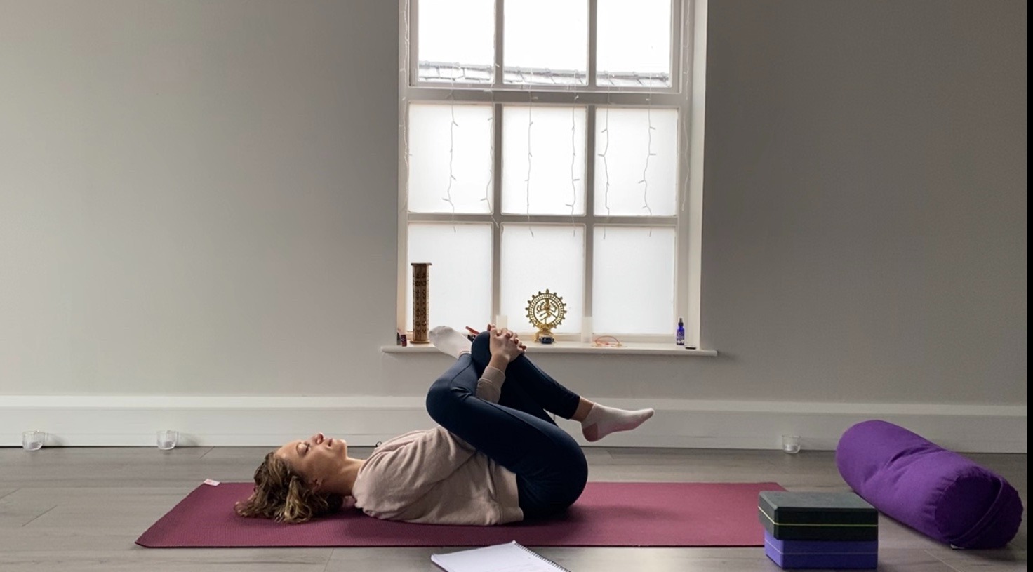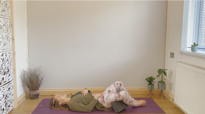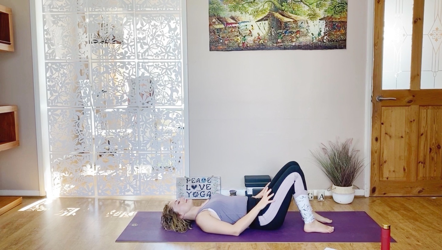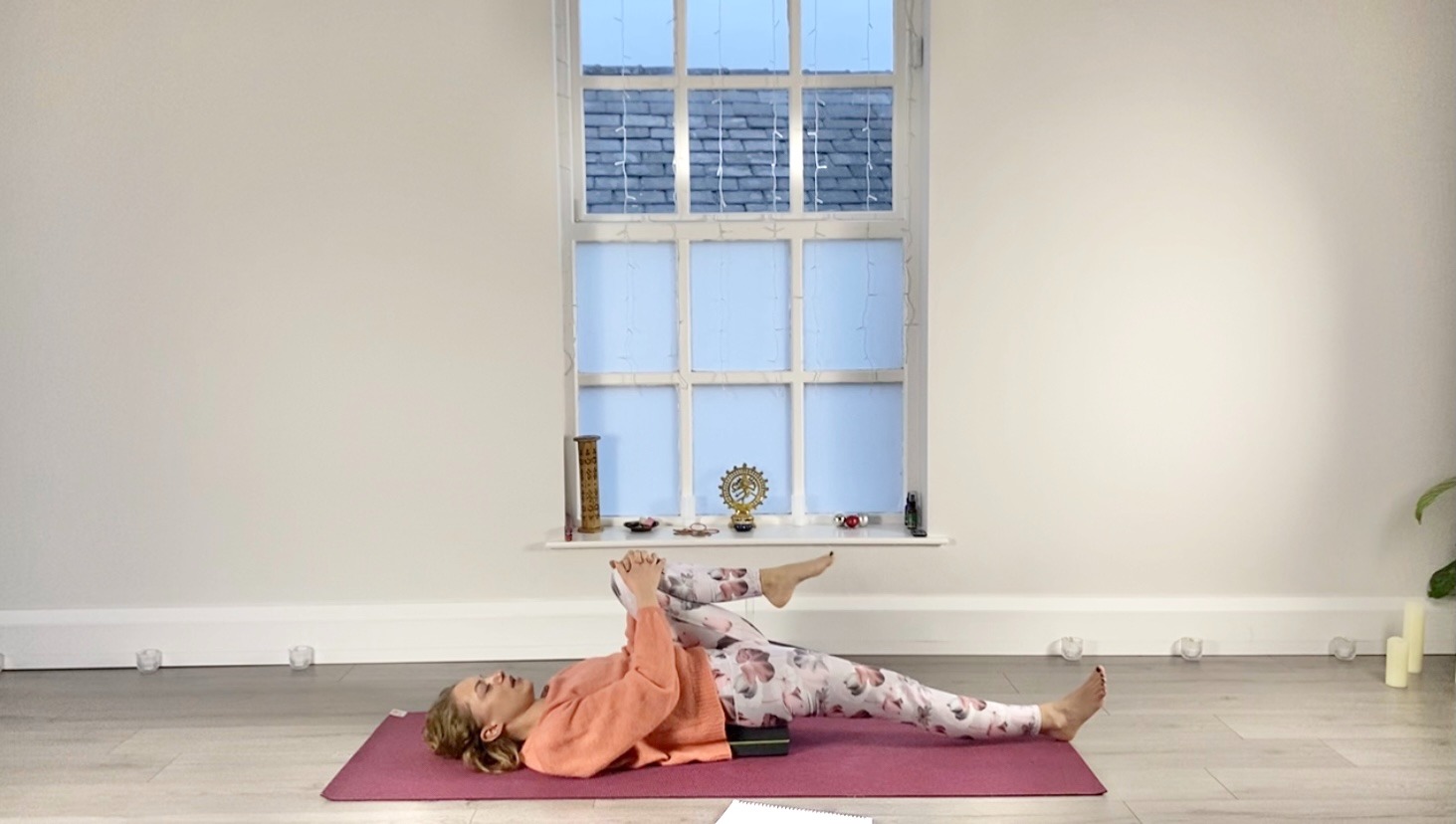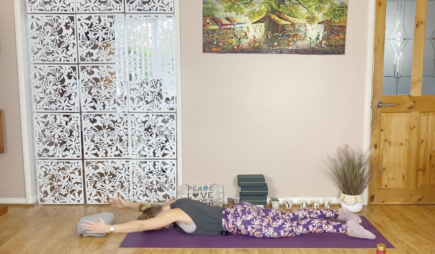 Wrapped for 2025! A restoring practice with breath stretches and nurturing movements. Add cosy socks, jumpers, blankets so you feel wrapped. Props: a cushion, 1 block, a yoga strap/belt and a roll up of a small towel/t-shirt.